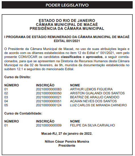 O concurso público ocorreu no último semestre de 2021 de forma gratuita. Das quatro vagas inicialmente previstas (três para Direito e uma para Ciências Contábeis), o Legislativo convocou mais dois futuros advogados pelo cadastro de reserva.