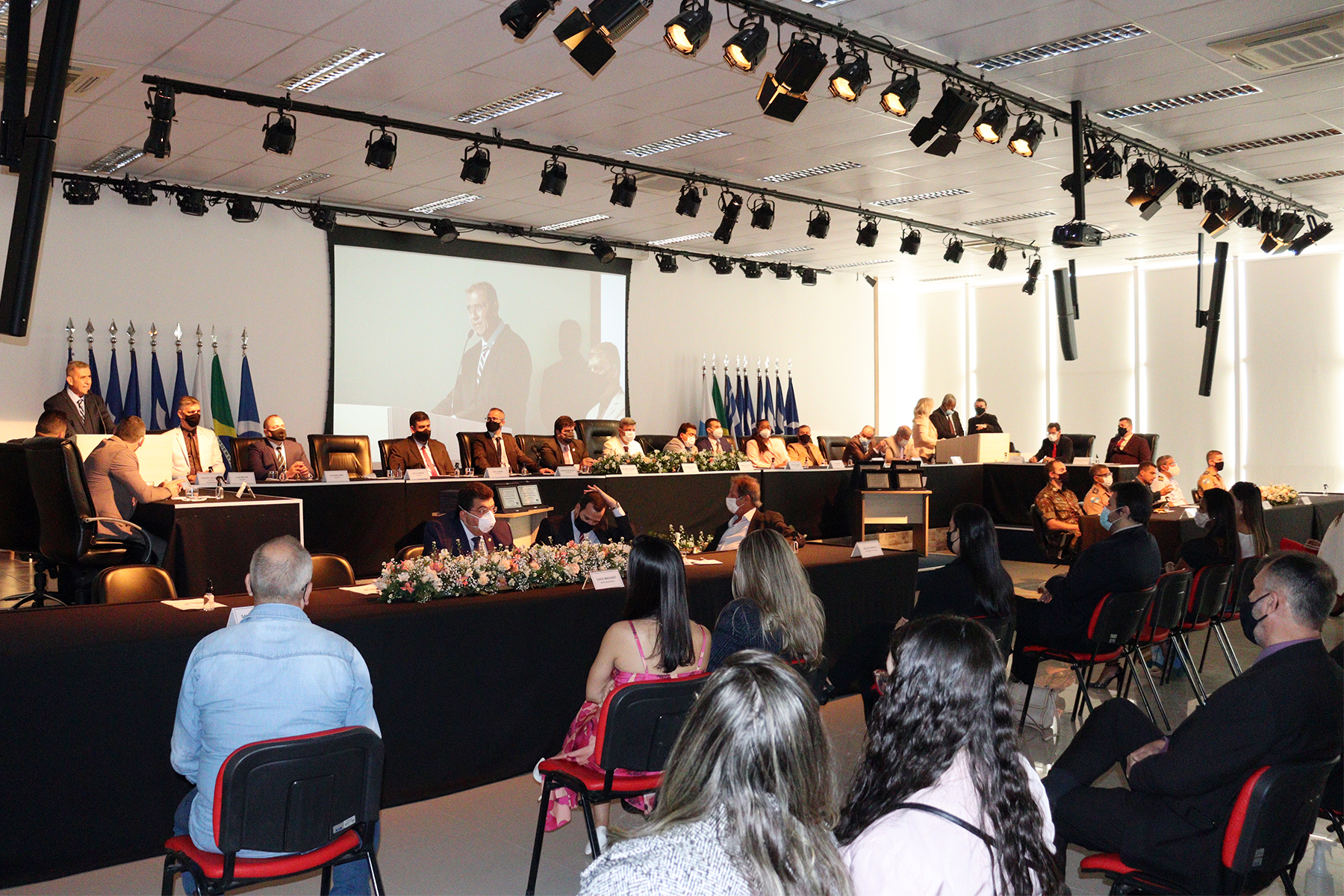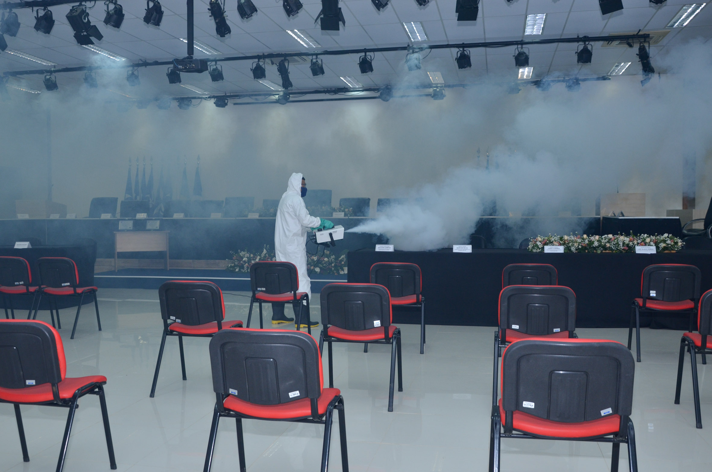 Com o objetivo de garantir a segurança na solenidade, servidores e parlamentares foram submetidos à testagem da Covid-19. No início da manhã, ocorreu a sanitização completa do Salão Nobre.